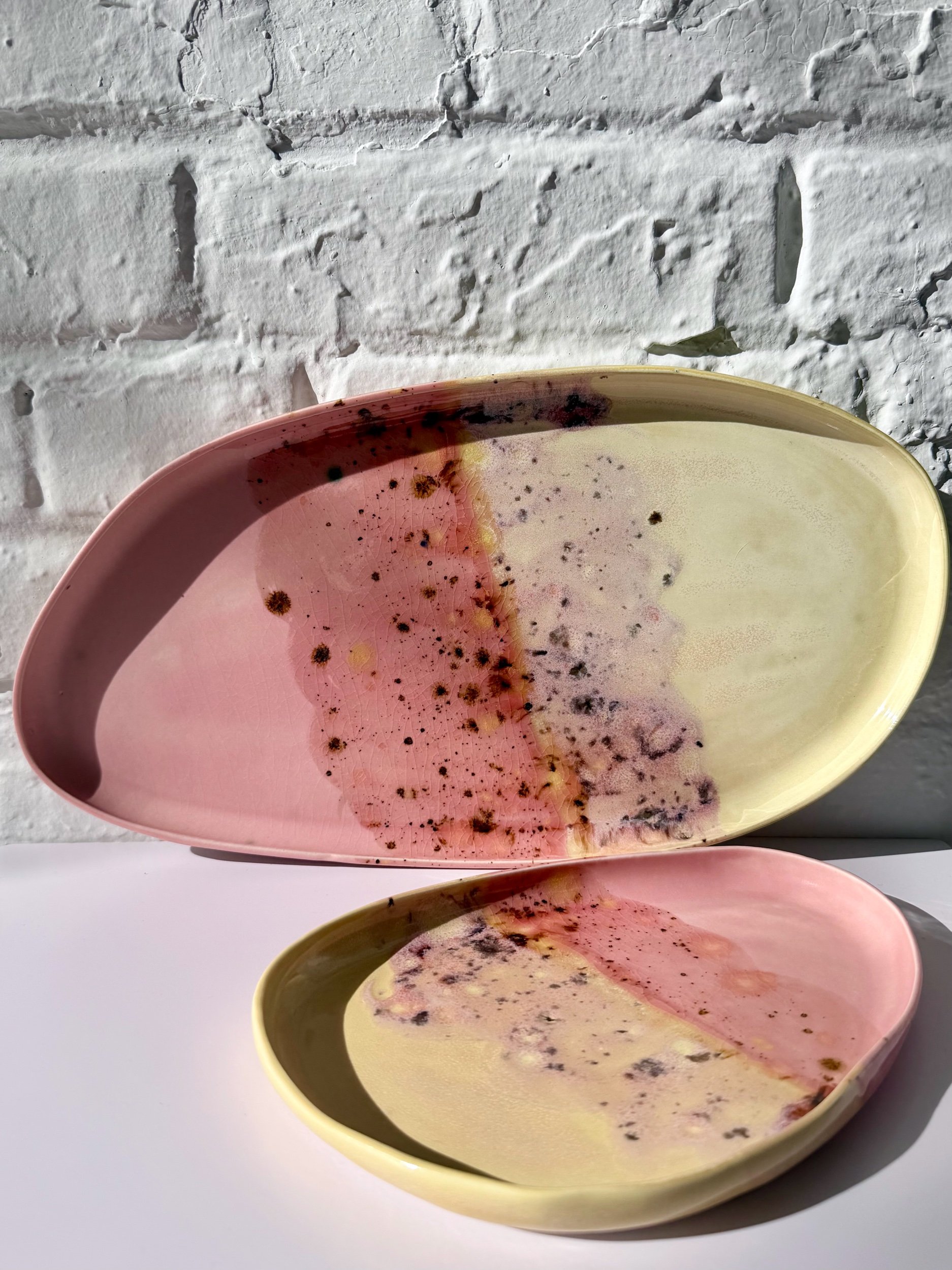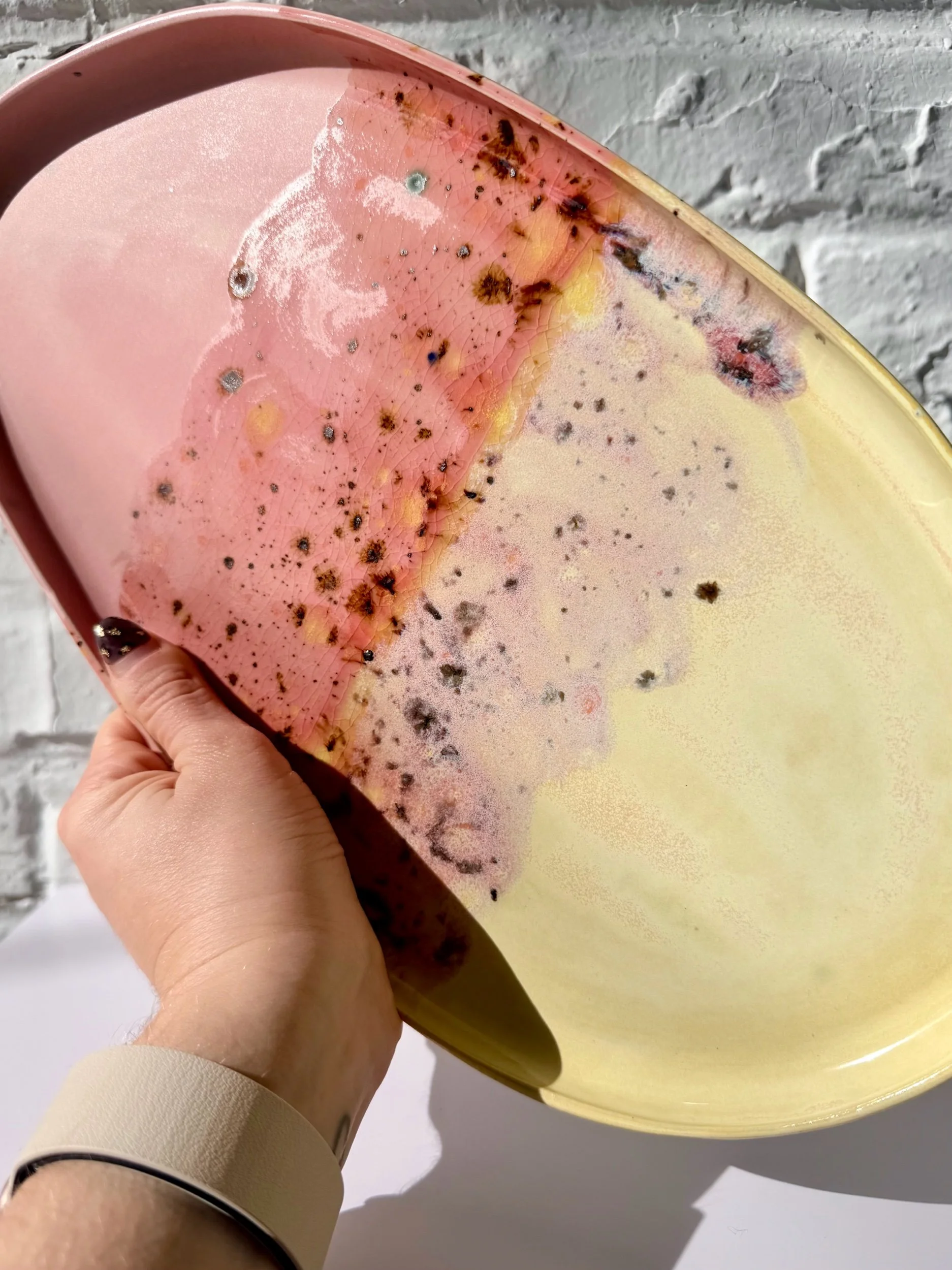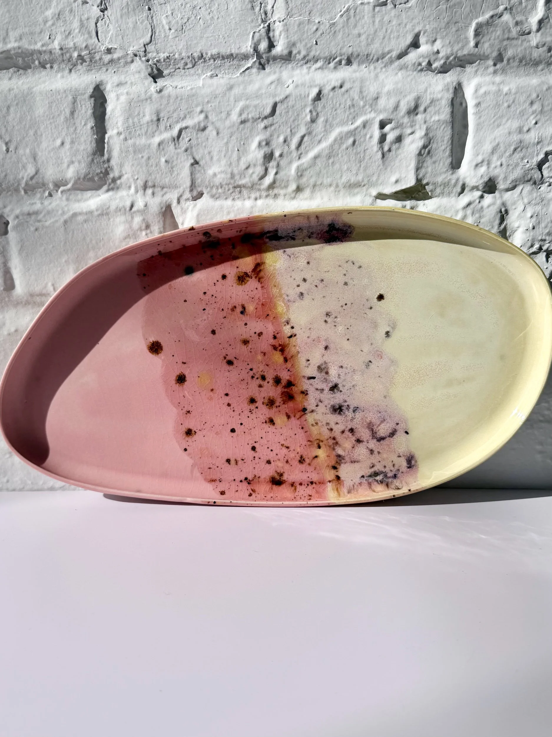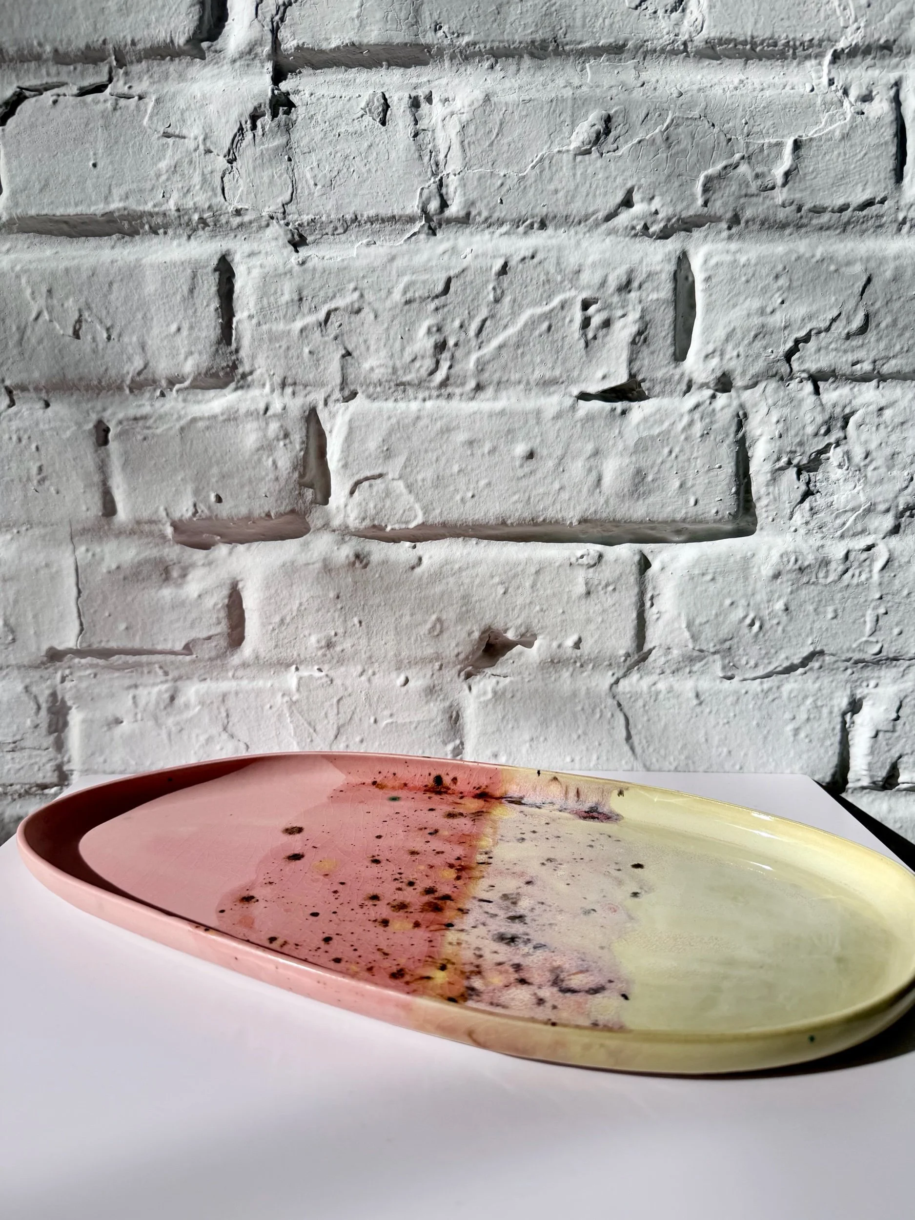 This ceramic platter with a soft crescent shape and modern, sculptural feel. Perfect for serving, styling, or everyday catchall use. Each piece is handmade and one of a kind.