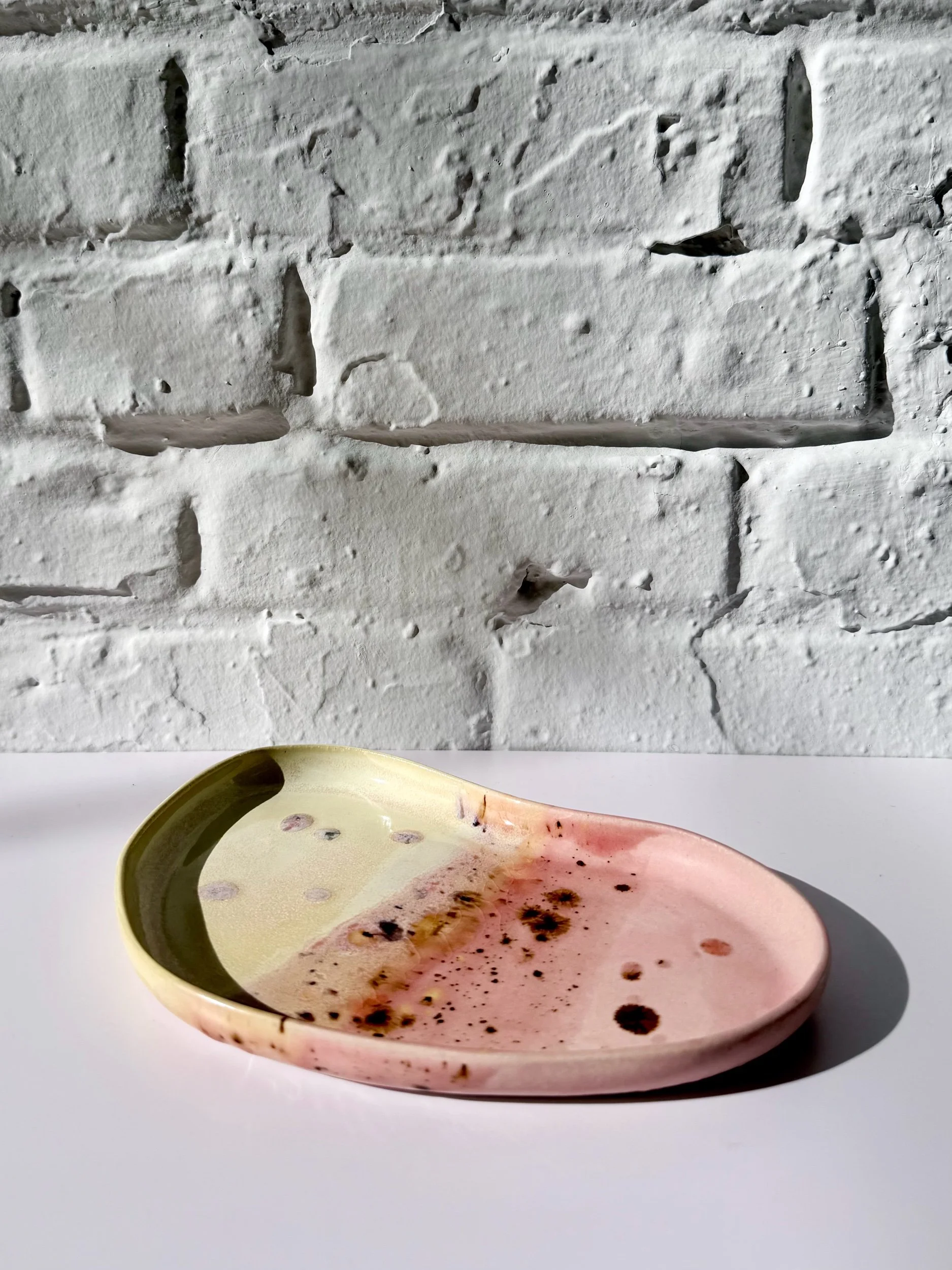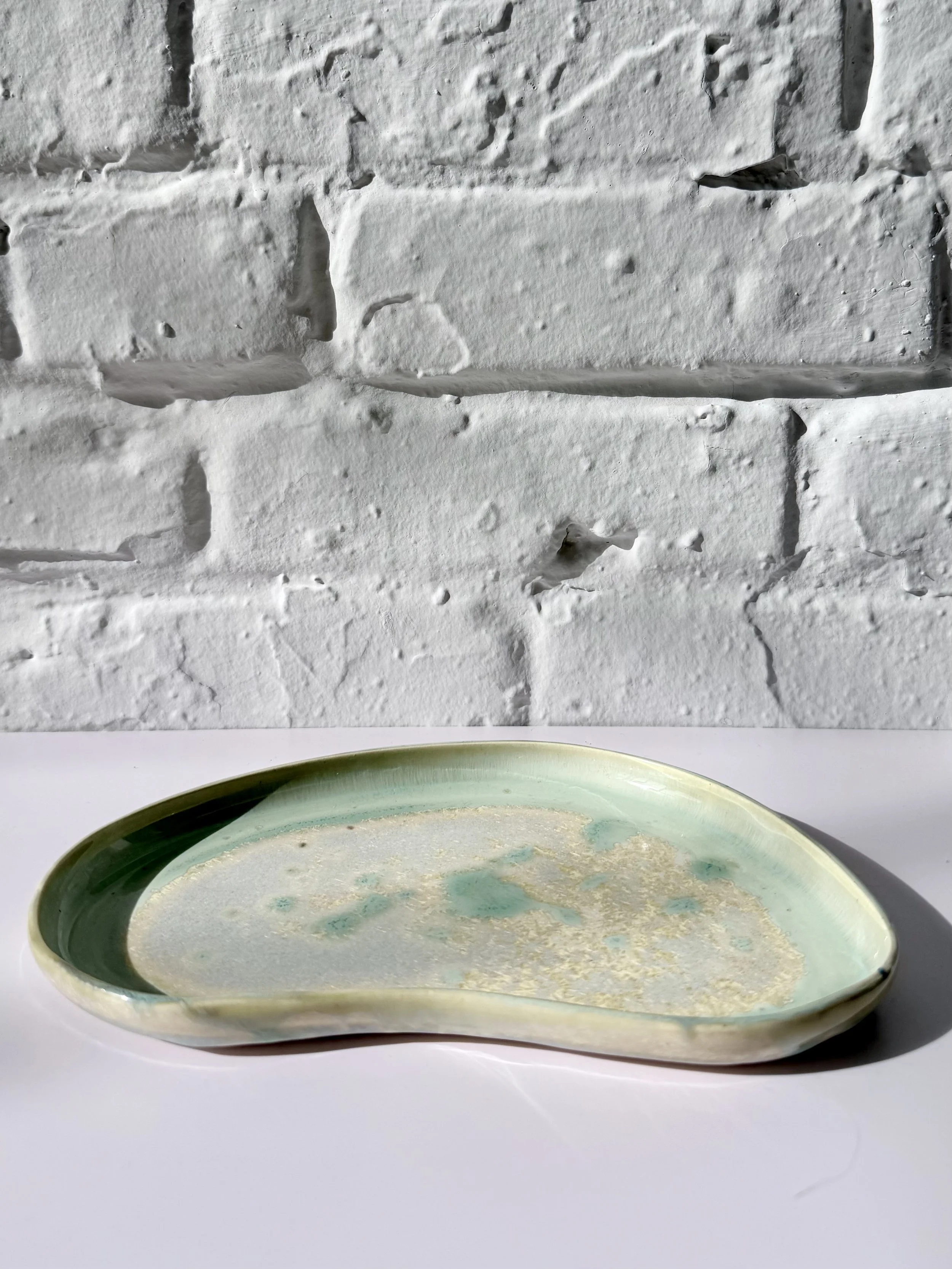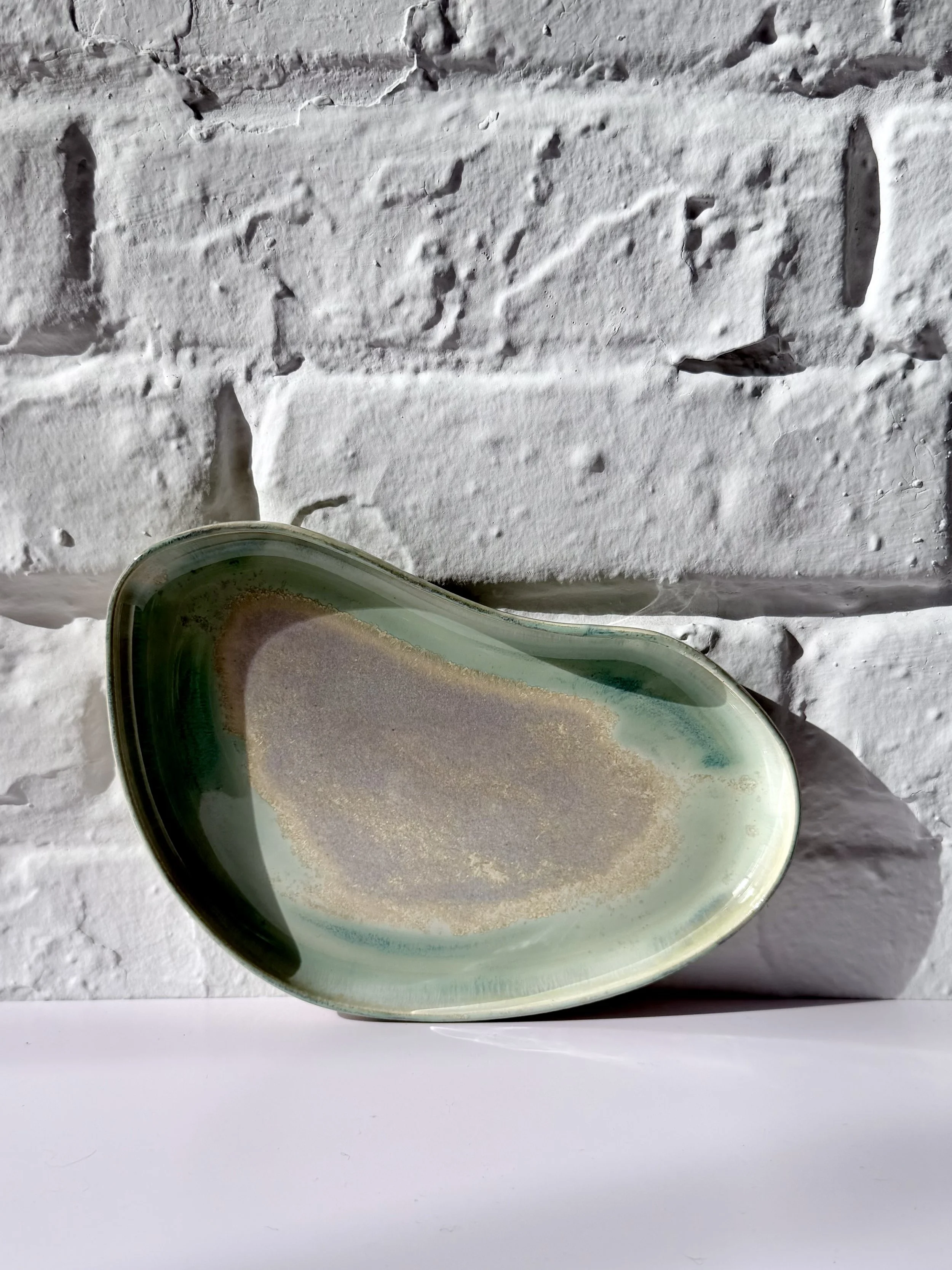 The Orbit Duo Platter is a handmade oval ceramic piece designed for everyday versatility. Featuring an attached small bowl, it can be used for serving, holding small objects, or styling as a simple catchall. Each platter is one of a kind, made to bring quiet beauty and function to any space.